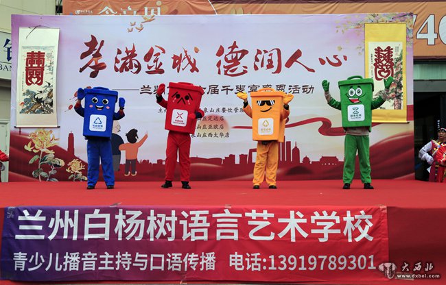 兰州白杨树语言艺术学校演出识别分类垃圾桶。 贾笑云 摄