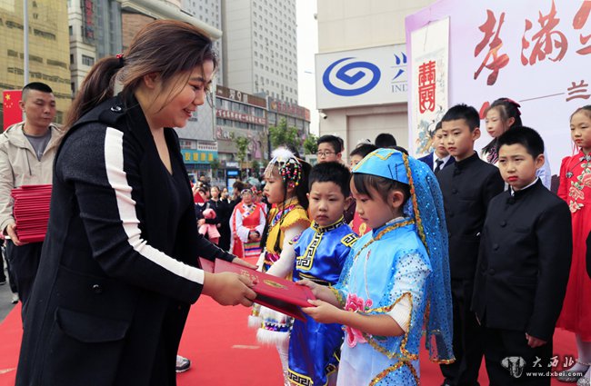 兰州玉泉山庄餐饮管理有限公司西太华店总经理段丽君为小演员颁奖。 贾笑云 摄