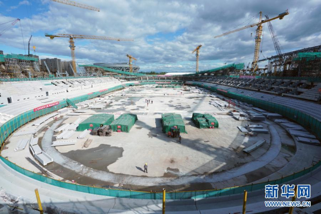 这是2018年9月30日拍摄的完成混凝土主体结构的国家速滑馆项目。新华社记者 鞠焕宗 摄