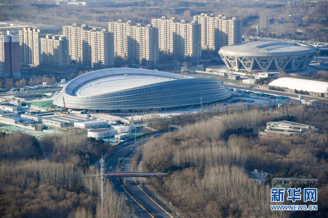 这是2019年12月31日拍摄的实现封顶封围的国家速滑馆。新华社记者 鞠焕宗 摄
