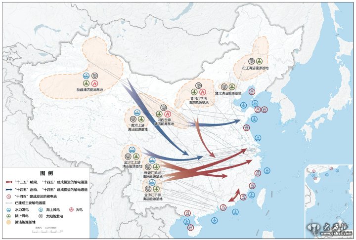清洁能源基地有9个,分别在金沙江上下游、雅砻江流域、黄河上游和几字湾、河西走廊、新疆、冀北、松辽。