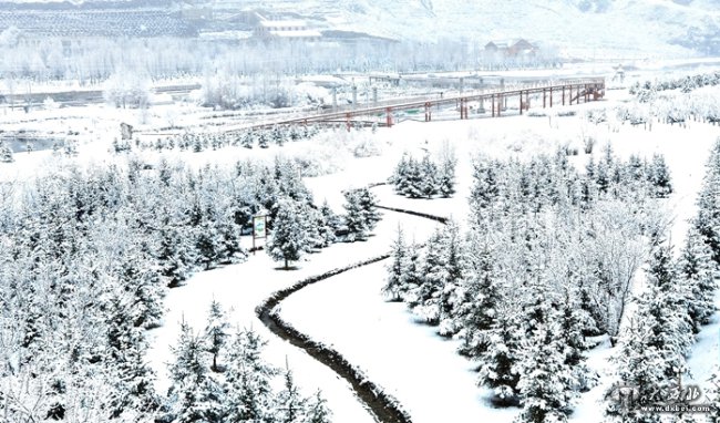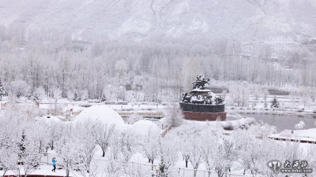 当日,一场春雪把肃南县裕固风情园装扮得银装素裹。据了解,此次强降雪天气对改善土壤墒情和净化空气,提高空气质量,增加祁连山积雪,以及春季农牧业生产具有有利作用。