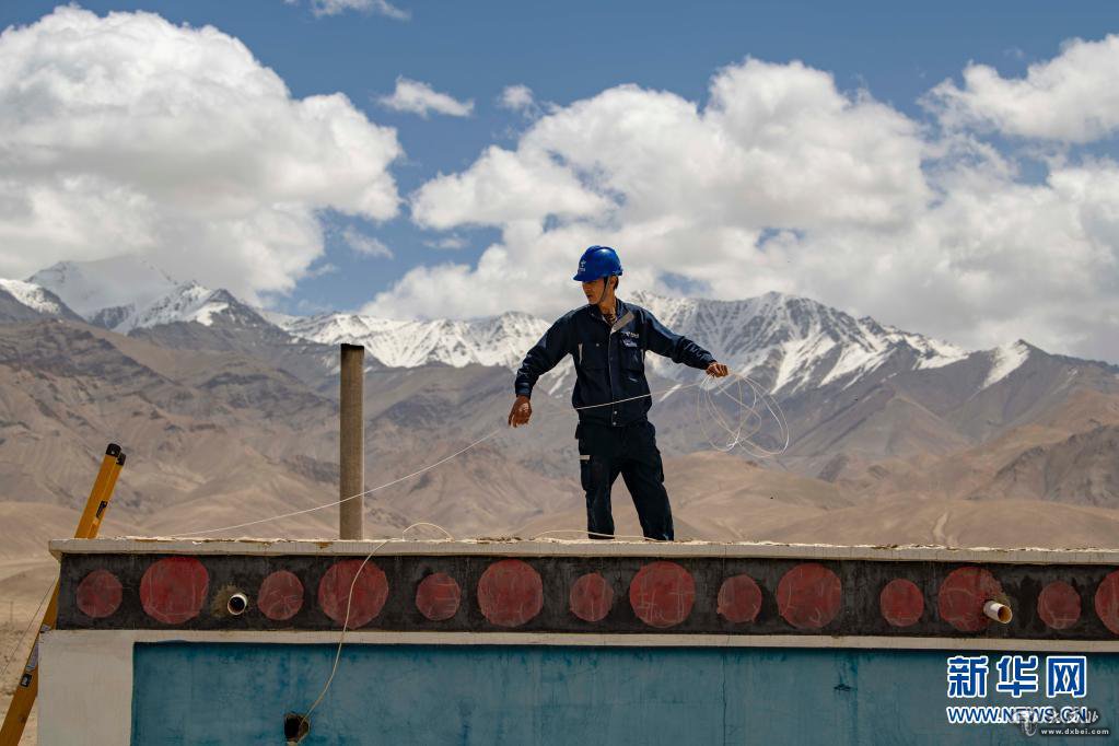在新疆喀什地区塔什库尔干塔吉克自治县,工作人员为当地农户铺设入户光纤(2020年6月10日摄)。新华社记者 胡虎虎 摄