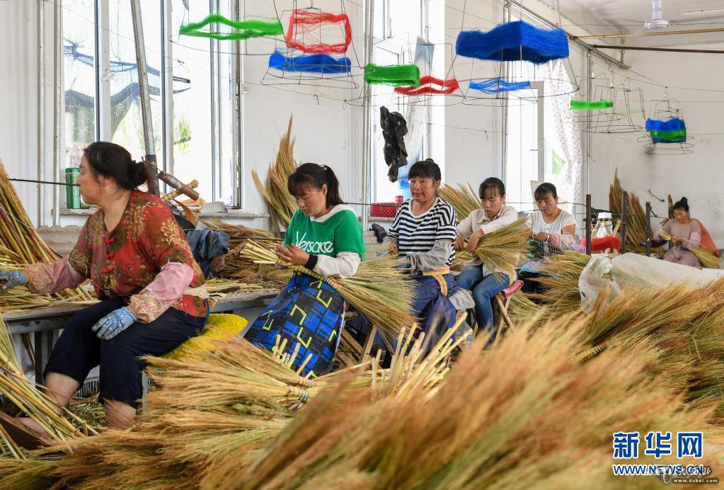 妇女在内蒙古巴林左旗林东镇扶贫车间内制作笤帚(2019年8月5日摄)。新华社记者 彭源 摄