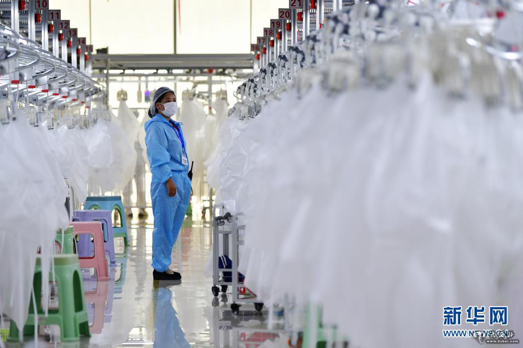 在甘肃临夏回族自治州积石山县,依托东西部扶贫协作平台引进的服装加工企业甘肃拓奇扶贫车间的员工在服装加工生产线上作业(2020年8月9日摄)。新华社记者 陈斌 摄