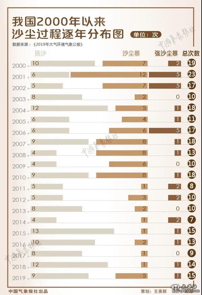 我国2000年以来沙尘过程逐年分布图。来源:中国气象报社