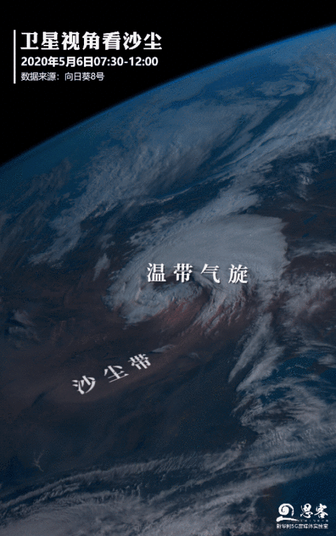 卫星视角下沙尘带的活动轨迹。卫星数据来源:向日葵8号