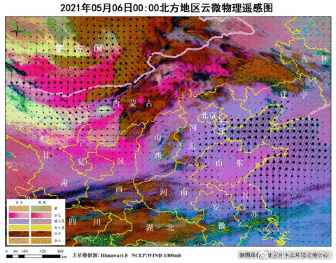 5月6日0至8时北方地区云微物理遥感图。来源@北京环境监测