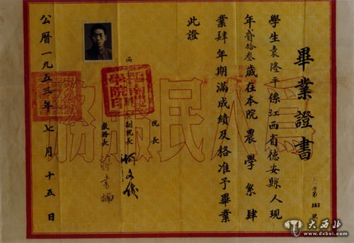 1953年8月,袁隆平从西南农学院(现西南大学)农学系毕业。同年被分配到湘西雪峰山麓安江农校教书。