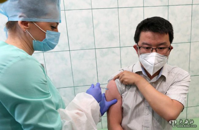 5月31日,一名中国公民在白俄罗斯首都明斯克接种中国新冠疫苗。
