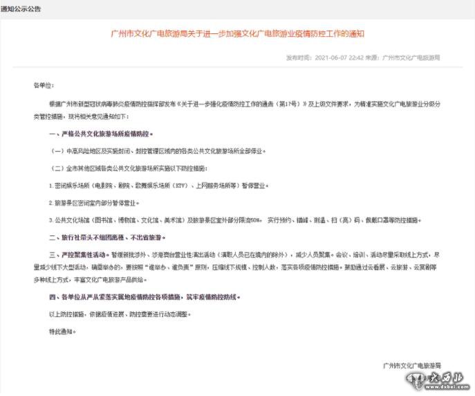 根据广州市新型冠状病毒肺炎疫情防控指挥部发布《关于进一步强化疫情防控工作的通告(第17号)》及上级文件要求,为精准实施文化广电旅游业分级分类管控措施,现将相关意见通知如下: