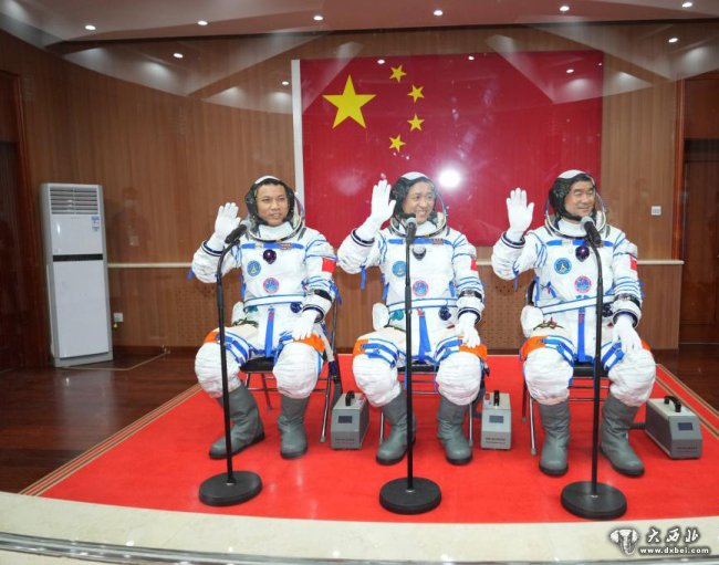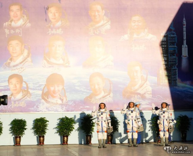 6月17日,神舟十二号航天员出征仪式在酒泉卫星发射中心举行。这是航天员聂海胜(中)、刘伯明(右)和汤洪波准备出征。新华社记者 李刚 摄