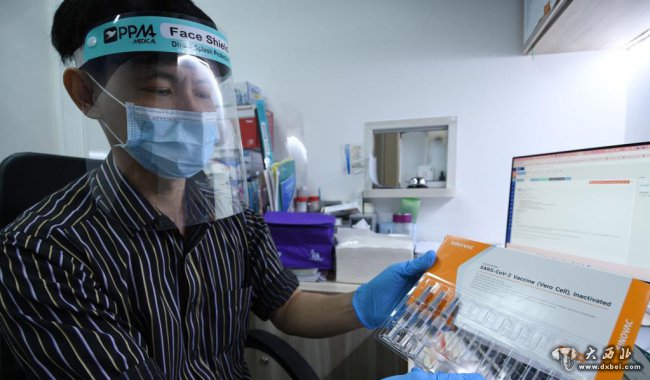 7月6日,新加坡一家私立诊所的医生展示科兴疫苗。