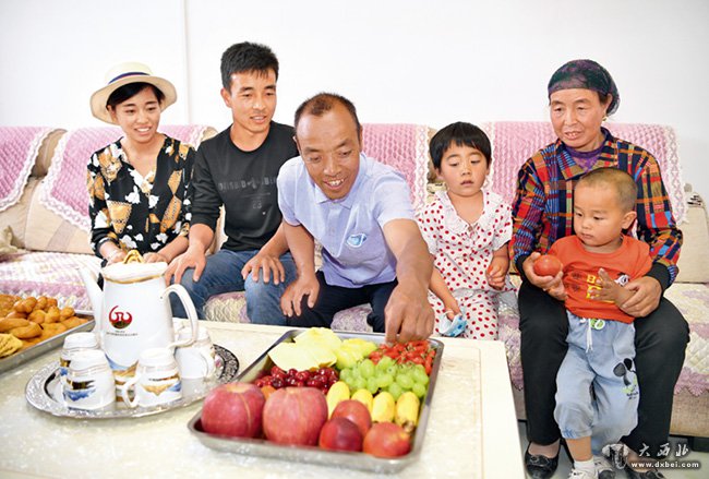 ▲ 吴忠市红寺堡区红寺堡镇弘德村村民刘克瑞(中)一家(2020年6月8日摄) 王鹏摄/本刊