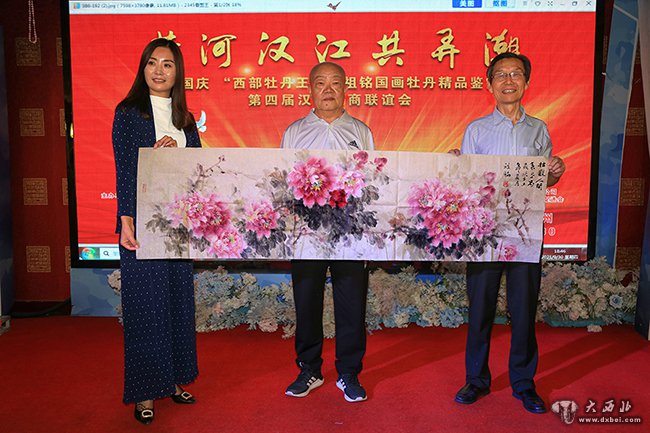 西部牡丹王王祖铭为协办单位甘肃铁建实业集团有限公司赠送了墨宝。联谊会为汉中市张骞文化经贸商会王祖铭国画工作室授牌。