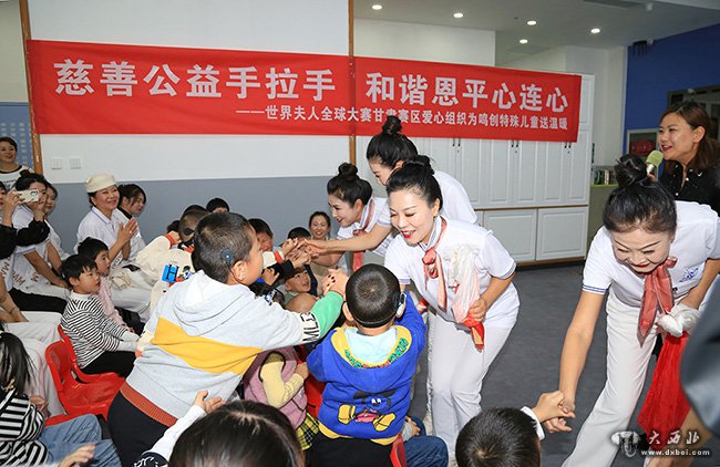 兰州市七里河区鸣创融合康复中心的孩子们参赛夫人们在一起。 贾笑云 摄