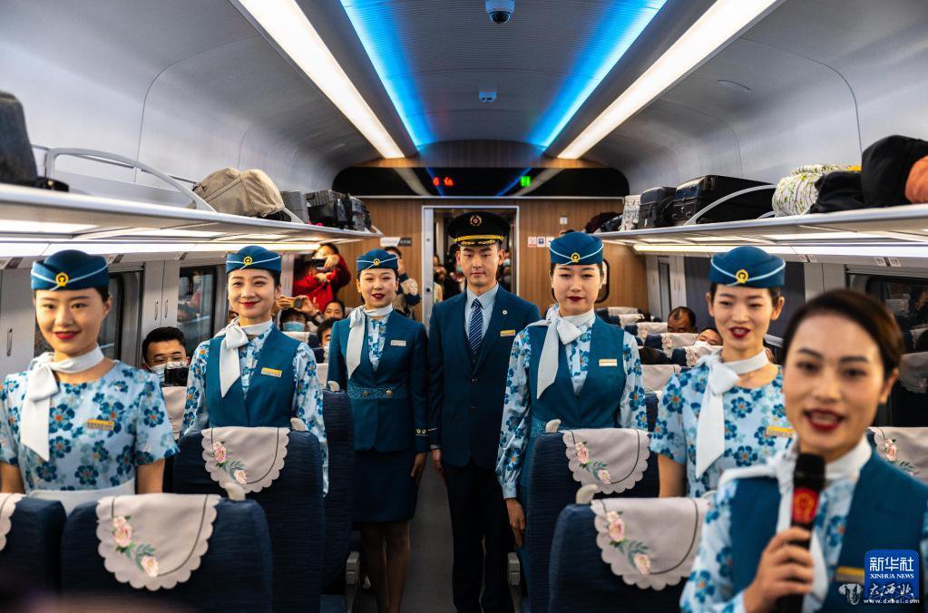当日上午,中国铁路昆明局集团有限公司昆明客运段为即将开行的中老铁路而设计的列车员制服“丝路花语”首次亮相。