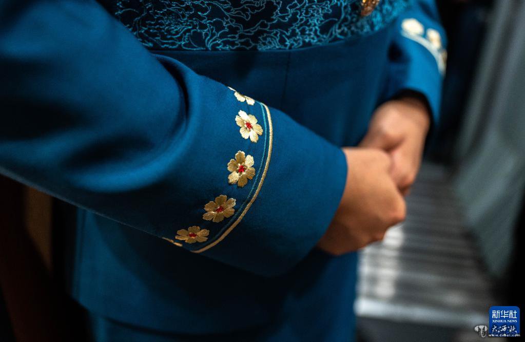 据介绍,本次发布的列车员制服以“丝路花语”为主题,以“孔雀蓝”为主色调,搭配牡丹花、山茶花等元素。