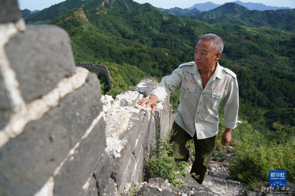 2020年8月20日,张鹤珊在河北省秦皇岛城子峪长城上巡护。新华社记者牟宇摄