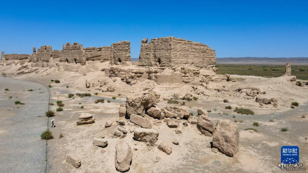 这是在甘肃省敦煌市境内拍摄的河仓城(大方盘城)遗址(5月31日摄,无人机照片)。新华社记者郎兵兵摄