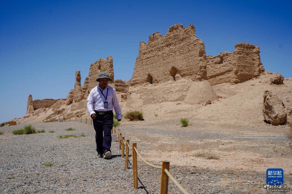 5月31日,张建军在河仓城(大方盘城)遗址周围巡护。新华社记者郎兵兵摄