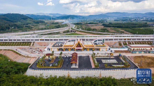△2021年9月11日在云南西双版纳傣族自治州勐腊县境内拍摄的中老铁路。