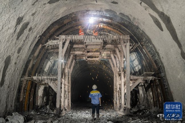 △2020年9月21日,工人在老挝乌多姆赛省孟雅县的中老铁路福格村隧道建设现场施工。