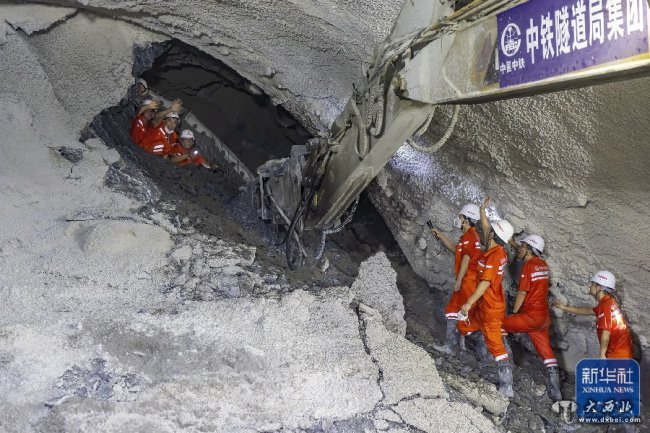 △2021年6月5日,景寨隧道贯通,建设者顺利“会师”.至此,中老铁路全线167座隧道全部贯通。