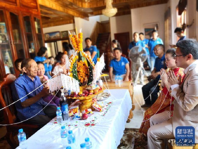 △2018年5月20日,在老挝万象,中铁二局中老铁路项目部职工熊应豪与老挝姑娘王妮举办订婚仪式。两人在中老铁路参建过程中相识、相知、相爱。
