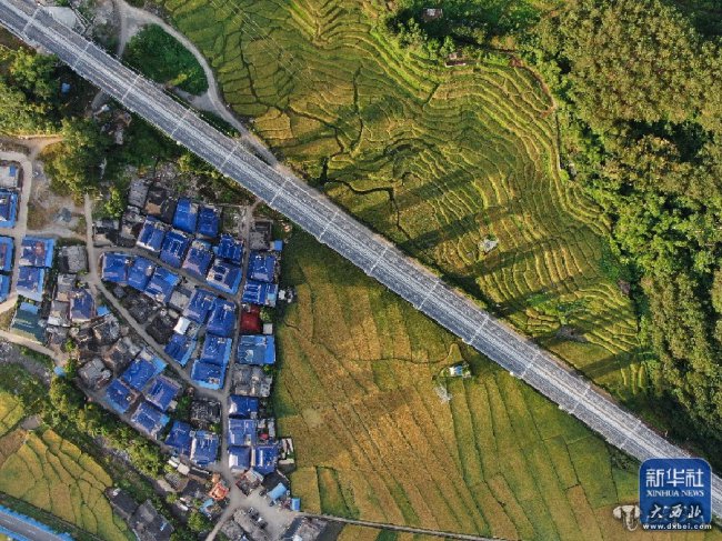 △2021年9月11日在云南西双版纳傣族自治州勐腊县境内拍摄的中老铁路(中)与昆曼大通道。