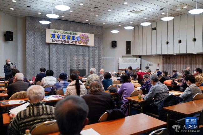 这是12月11日拍摄的在日本东京都YMCA亚洲青少年中心举行的“南京大屠杀84周年证言会”现场。