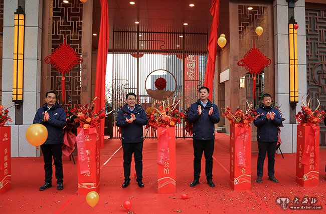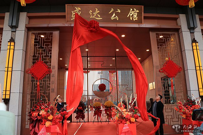 盛达集团副董事长赵海峰与业主代表为盛达公馆揭牌。 贾笑云 摄