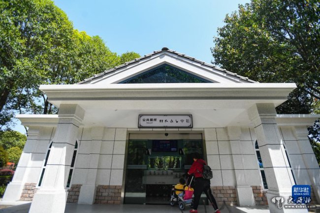 市民带着小朋友进入位于湖南长沙县星沙中心广场的智慧厕所(2021年3月24日摄)。新华社记者 陈泽国 摄