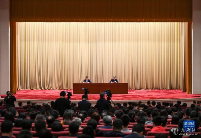 2021年3月16日,党史学习教育中央宣讲团首场报告会在北京举行。这是中央宣讲团成员、中央党史和文献研究院院长曲青山(右)在报告会上作宣讲报告。新华社记者 陈晔华 摄