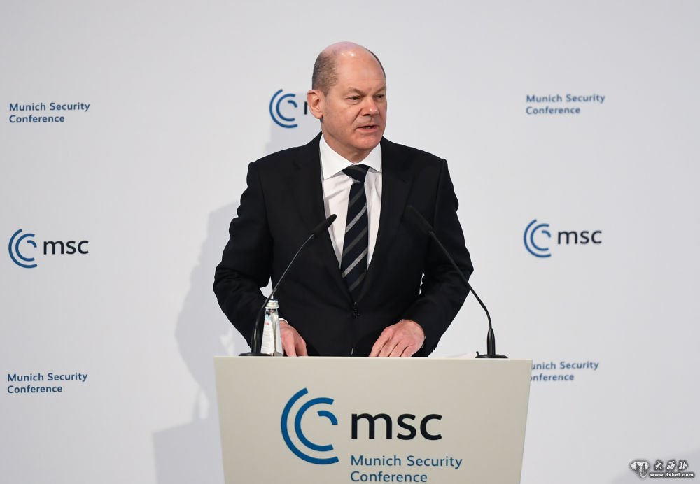 2月19日,在德国慕尼黑,德国总理朔尔茨在第58届慕尼黑安全会议(慕安会)上发言。(新华社记者逯阳摄)