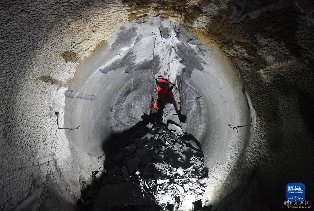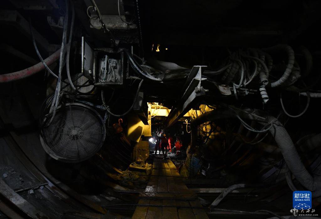 2月22日拍摄的陕西引汉济渭工程秦岭输水隧洞贯通处。