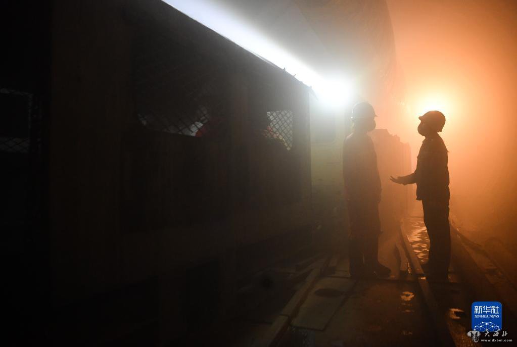 2月22日,工作人员在陕西引汉济渭工程秦岭输水隧洞施工现场交流。