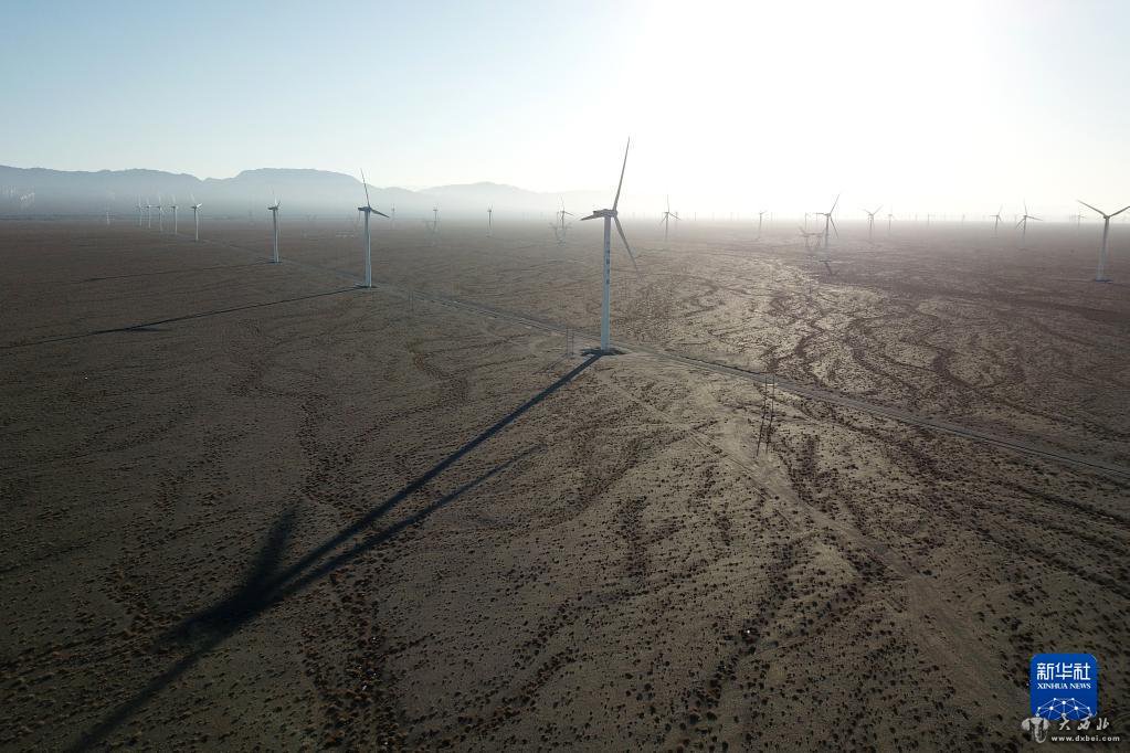这是2021年12月8日拍摄的中节能(甘肃)风力发电有限公司玉门昌马风电场的风机(无人机照片)。新华社记者范培珅摄