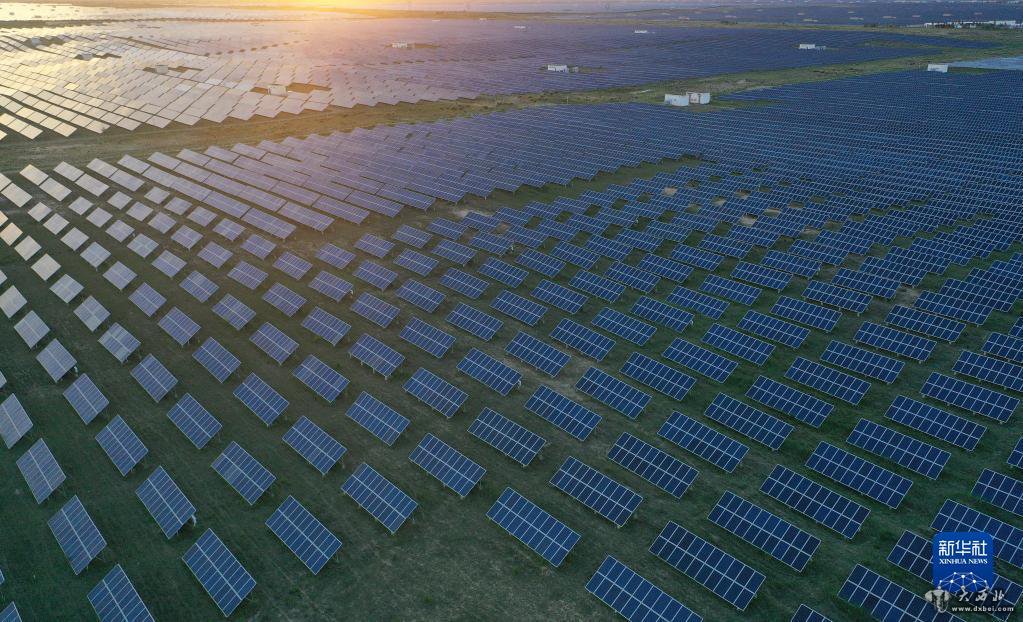 这是青海省海南藏族自治州共和县境内的大唐青海公司新能源分公司光伏电站一角(2020年7月7日摄,无人机照片)。新华社记者张宏祥摄