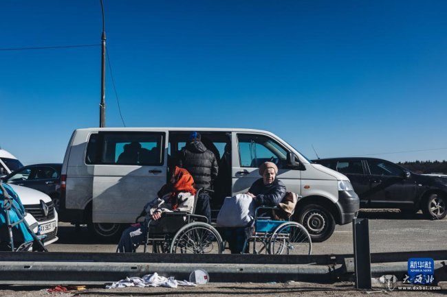 3月11日,两名老人在乌克兰基辅州伊尔平等待撤离。