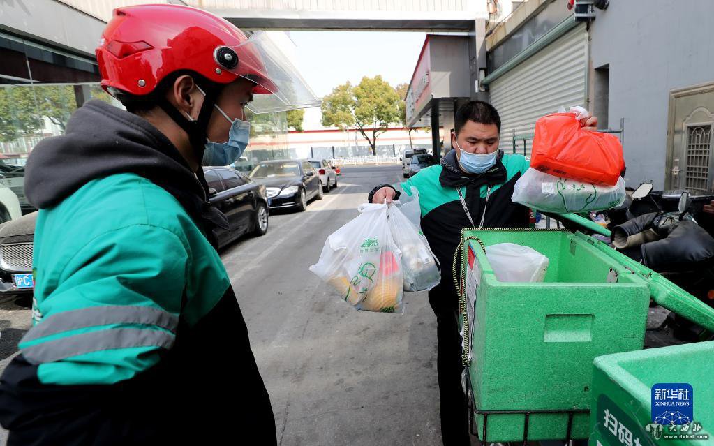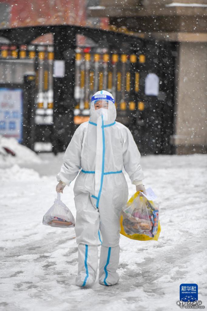 3月15日,吉林省吉林市昌邑区兴华街道中兴社区网格员宋冉为隔离居民运送生活物资。新华社记者张楠摄