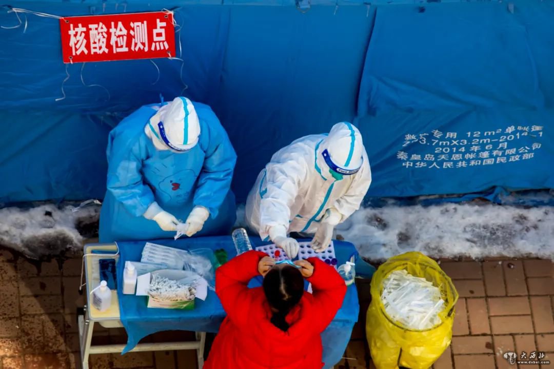 △吉林市某住宅小区核酸检测点,市民接受核酸采样。