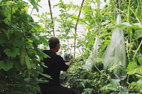记者注意到,每一个大棚西瓜外都包裹着一个塑料袋,这样不仅可以减少农药残留和雨水污染,而且可以防雹防病、提高西瓜品质。据大棚工作人员介绍,青城西瓜多数为金星吊瓜,有外表油光圆润、皮薄汁多、甜脆可口等特点,且因热棚种植,上市较一般西瓜早一个多月,因此成为兰州市的紧俏瓜果产品之一。“现在大棚内部分西瓜已经成熟,市面上已有出售。我们还推出了瓜农线上线下同步销售,因种植规模较小且口碑好,一般上市不久就会被抢购一空。”工作人员如是说。