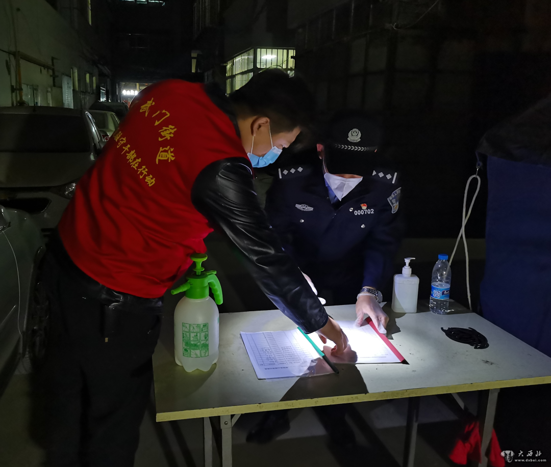 3月23日凌晨2点,兰州市城关区广武门街道南城根社区刚恢复寂静,漆黑的院子角落里闪着光,付连敏和战友坐在一盏“小太阳”旁记录信息。半小时前,付连敏配合医护人员转移了2名密接人员,扫码、登记、核查、消毒,付连敏和战友已经连续值守两个夜晚了。