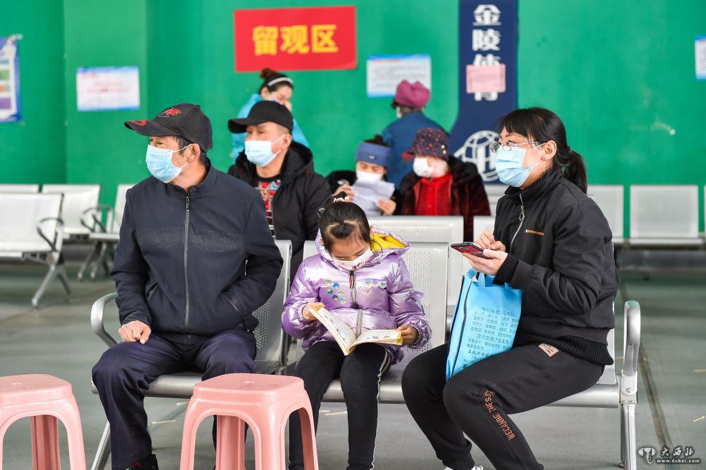 3月22日,在呼和浩特市公主府公园新冠疫苗接种点,接种完疫苗的市民在留观区等待。新华社记者刘磊摄