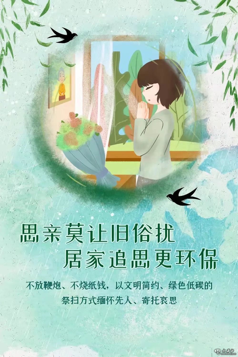 二、绿色低碳文明祭祀。思亲莫让烟尘扰,鲜花一束慰先人。提倡树立“绿色、低碳、环保”的健康生活理念,做绿色低碳、文明祭祀的传播者,在祭祀过程中不乱扔杂物,不破坏草地树木,不污染空气河流。严格遵守有关防火规定,自觉做到不随意焚烧冥纸冥币、燃放鞭炮,杜绝各种安全问题的发生。