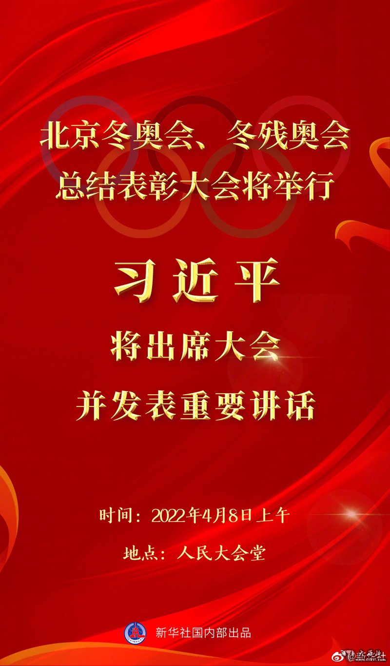 新华社北京4月6日电 北京冬奥会、冬残奥会总结表彰大会将于4月8日上午在人民大会堂隆重举行。中共中央总书记、国家主席、中央军委主席习近平将出席大会并发表重要讲话。