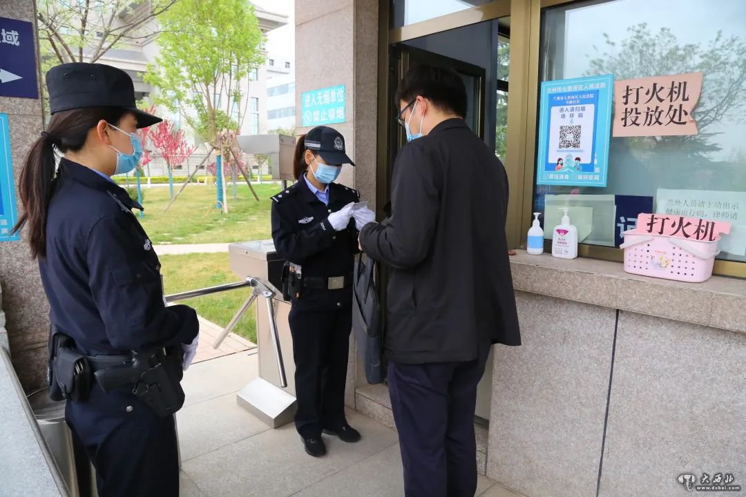 在法院门口安检处,司法警察和安保人员严格执行疫情防控规定,严格查验健康码、行程码、48小时核酸检测证明,测量体温,并进行信息登记,引导来访人员保持1米间隔,有序进入法院。通过安检的人员,由司法警察引导进入诉讼服务通道现场立案,立案工作繁忙而平稳开展。或与承办法官取得联系后,进入审判法庭参与开庭,案件开庭审理和庭审直播工作有序推进。或进入机关大楼一楼北大厅递交诉讼材料、执行材料等,线下执行也工作顺利开展。