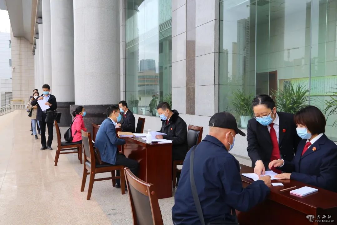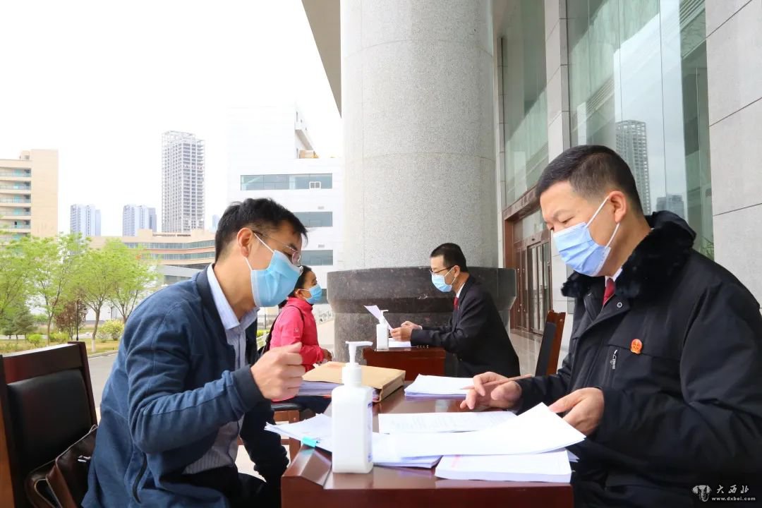 在机关大楼南大厅外设立诉讼通道,由党组书记、院长徐二虎,党组成员、副院长张妍,审判委员会专职委员田孜带领部分部门负责人开展立案审查、分流案件,在完成诉讼材料审核后,由工作人员引导当事人进入诉讼服务大厅,办理立案、诉前调解、缴费等事项,通过提高诉讼材料审核效率,分流当事人到不同业务窗口,实行立案单线流程等方式,极大地提高了立案效率,避免了人员聚集、扎堆。并实行院领导排班负责制,院领导在一楼大厅负责接待、分流、咨询等工作,做到来访有接待、立案及时办、咨询有答复、材料及时收、办完立即走。