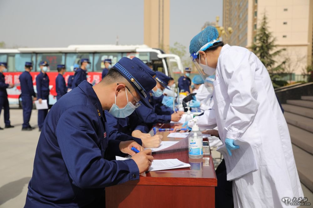 4月13日,在甘肃省森林消防总队,参加献血的指战员进行无偿献血前的登记。新华社记者杜哲宇摄
